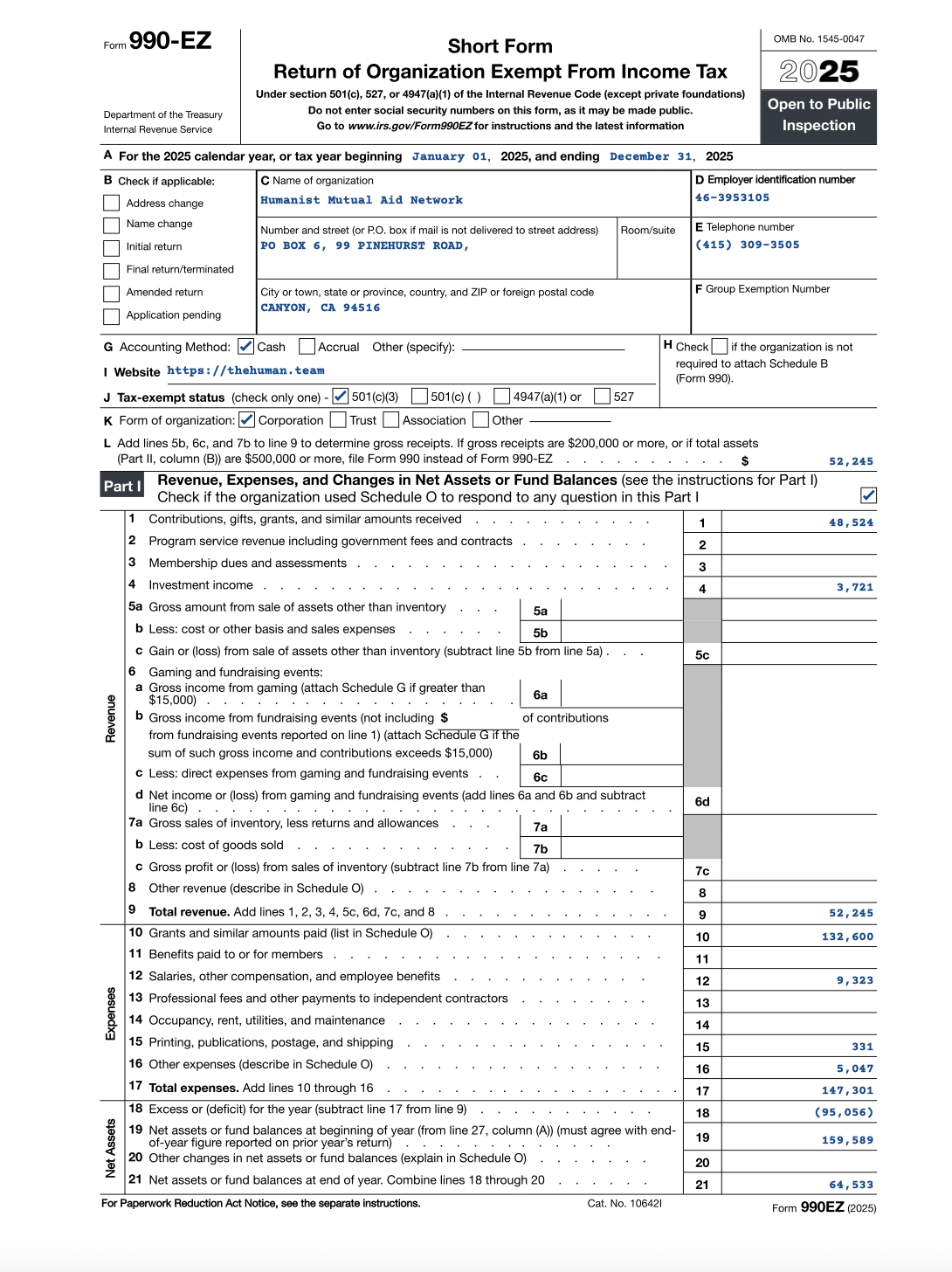 EIN # / 501c3 & ByLaws